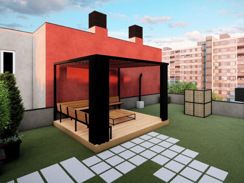 روف گاردنها بهعنوان راهکاری برای استفاده بهینه از فضاهای بلااستفاده شهری مطرح هستند. یکی از مزایای اصلی طراحی و اجرای روف گاردن، ایجاد فضایی دلنشین برای استراحت و تفریح است. در این پروژه، با توجه به مساحت بالای بام، تصمیم گرفته شد که تنها بخشی از آن به فضای سبز اختصاص یابد تا هزینهها مدیریت شده و یک محیط گرم و صمیمی برای استراحت و دورهمیهای خانوادگی و دوستانه ایجاد شود.