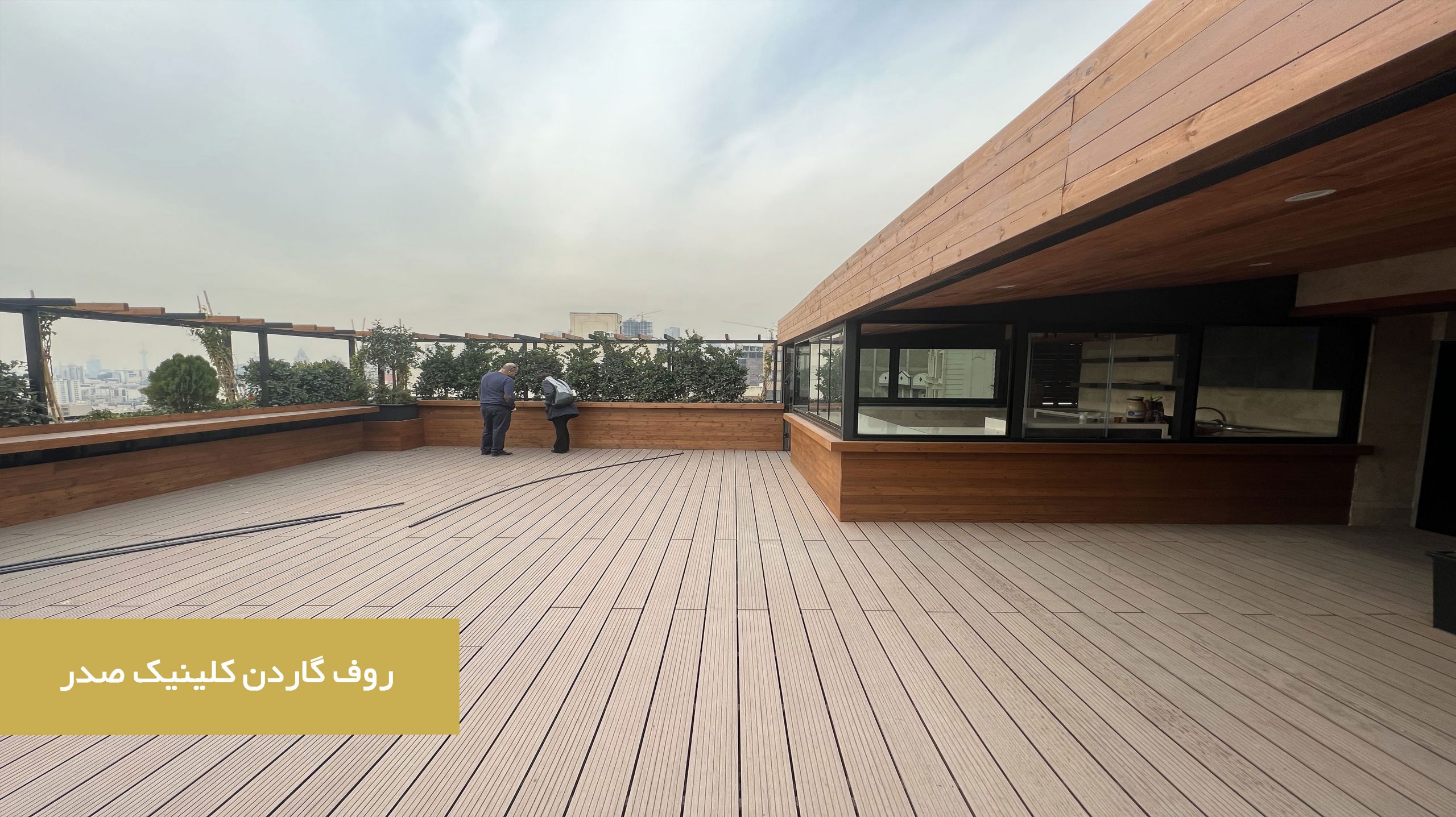 - کفسازی: کف با استفاده از چوب پلاست (wood-plastic composite) پوشانده شد، مادهای که ظاهر چوب طبیعی دارد اما دوام و مقاومت بیشتری در برابر شرایط آبوهوایی ارائه میدهد.